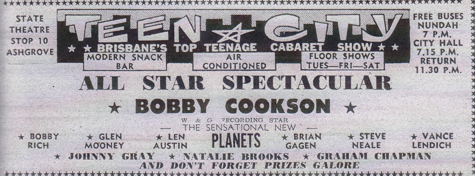 May 16th- Del Juliana, Paul Windsor, Norm Miller(Final Brisbane Appearance), Johnny Gray, Midget McNeil, Steve Kipner, Jim McSweeney, The Planets, The G Men and Gary and the Tikis